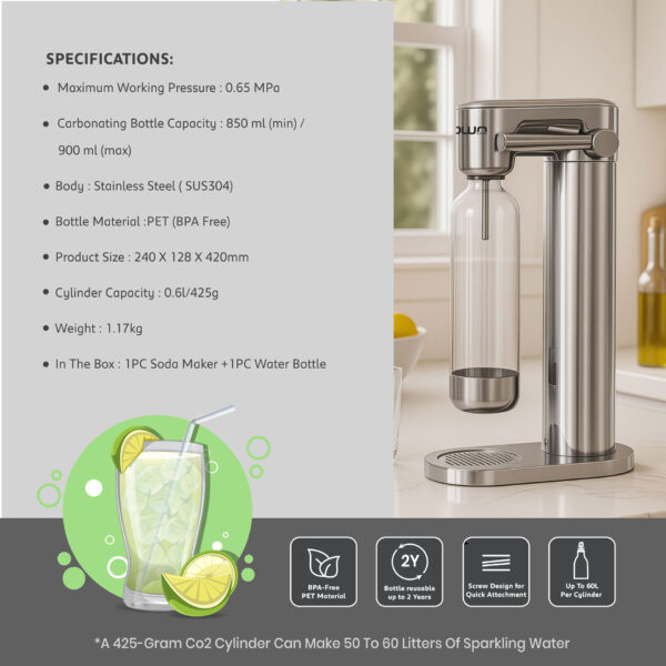 A practical and stylish solution for creating sparkling water at home—simple to use, easy to maintain, and designed for everyday convenience.